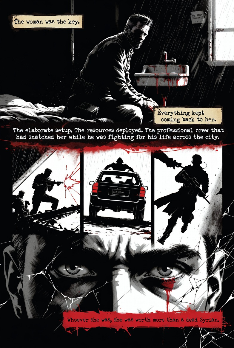 The woman was the key. Everything kept coming back to her. The elaborate setup. The resources deployed. The professional crew that had snatched her while he was fighting for his life across the city. Whoever she was, she was worth more than a dead Syrian intelligence officer and four expendable contractors.